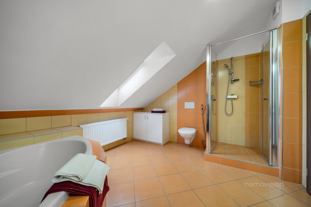 koupelna se sprchovým koutem i rohovou vanou – ideální pro rychlá rána i klidné večery