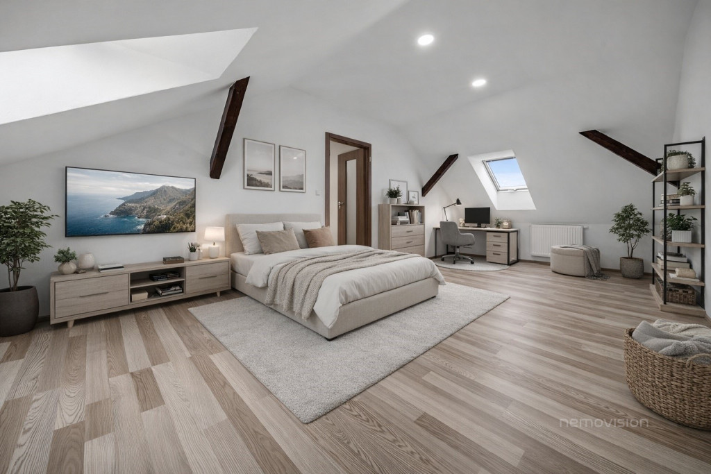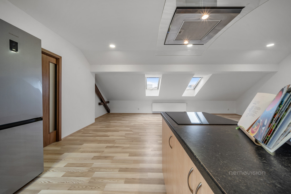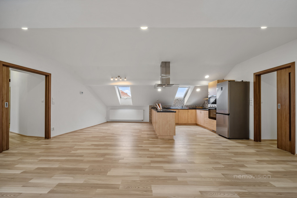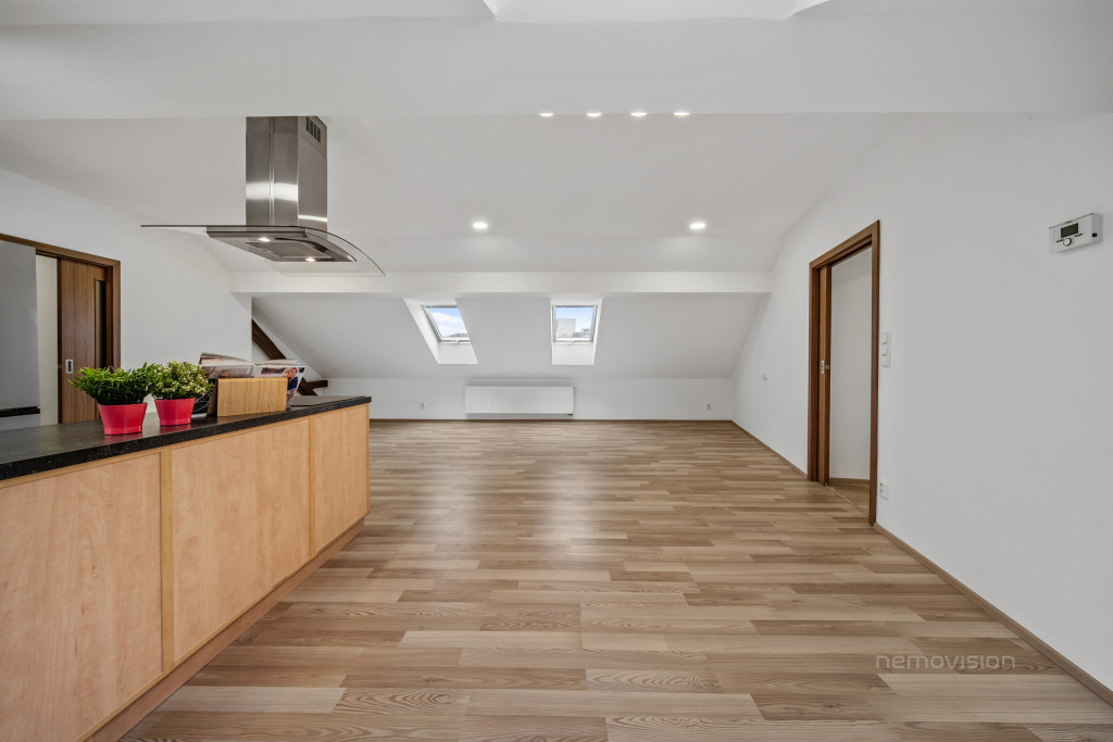 V klidné části Brna – Husovic, na ulici Nováčkova, se nachází výjimečně prostorný a světlý byt 4+kk o celkové ploše 138 m², situovaný v půdní nástavbě bytového domu. Nástavba byla realizována před zhruba 10 lety a byt je ve výborném technickém stavu, připravený k okamžitému bydlení bez nutnosti dalších investic.